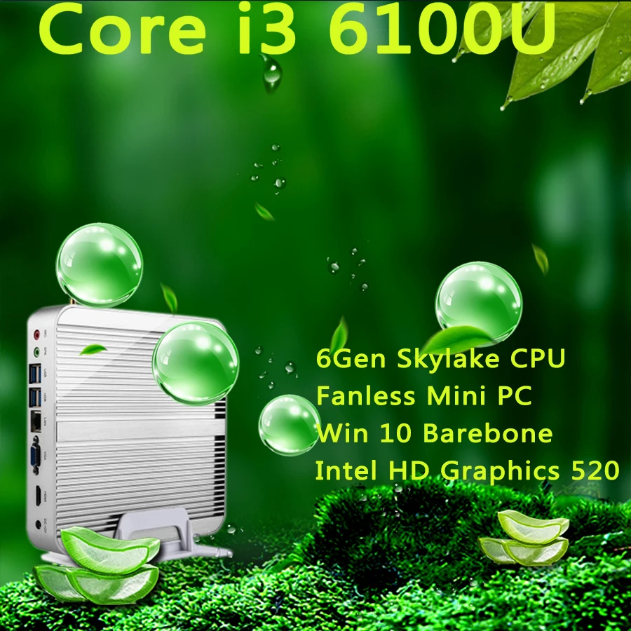 Content Review : In Stock! Skylake Fanless Mini PC Win 10 Barebone Inter core i3 6100U Intel HD Graphics 520 6Gen 4K HTPC Desktop Computer