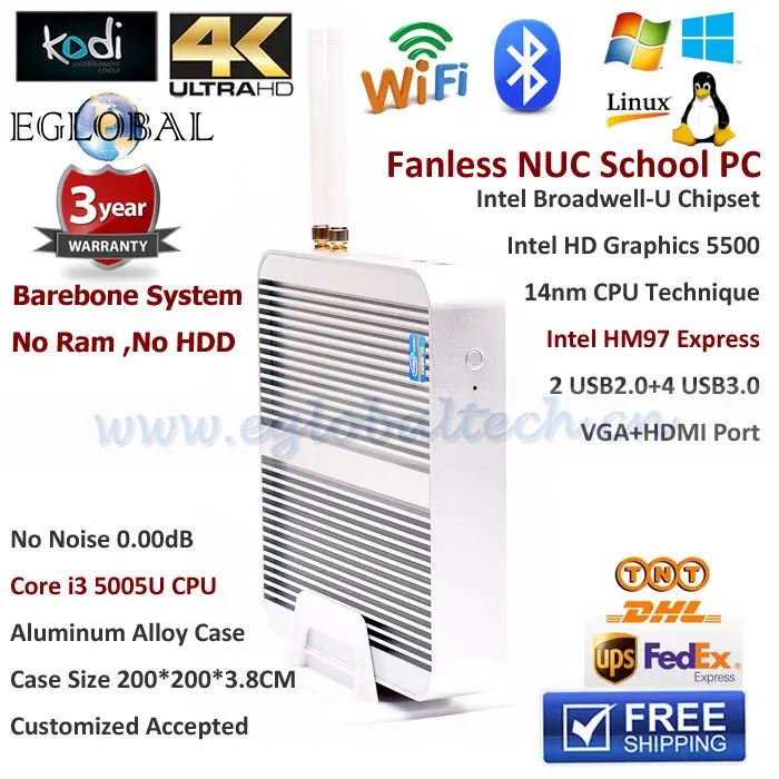 Main Features : Intel Core i3 5Gen 5005U Broadwell Barebone NUC PC Fanless HDMI Thin Client Intel HM97 HD5500 4K HTPC Mini Computer Windows 10