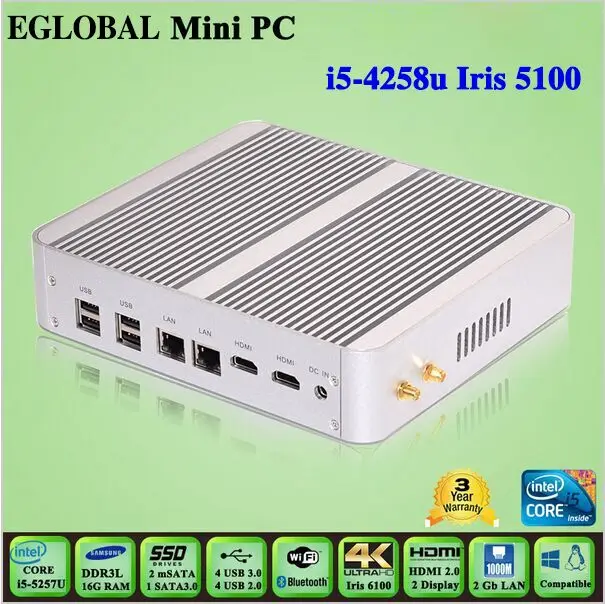 Main Features : Mini PC INTEL i5 4258U Broadwell 5100U Processor Fanless Mini PC Computer Support Windows 10 With 4K Resolution Dual HDMI LAN