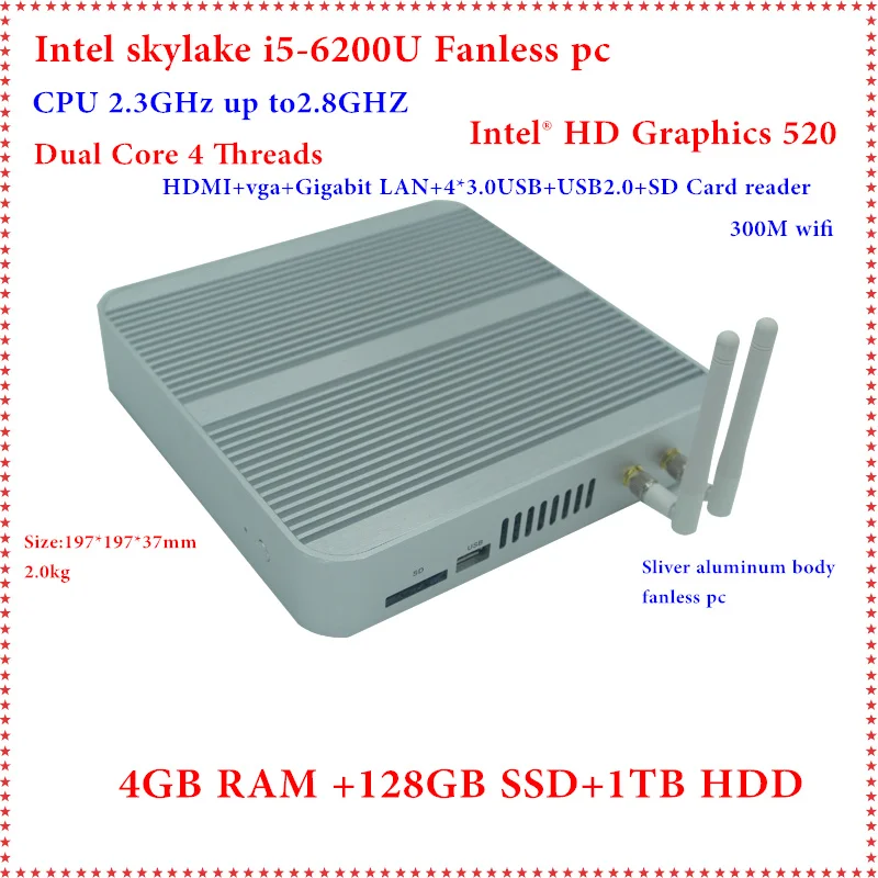 Main Features : 6th Gen. i5 6200U CPU Fanless Mini PC i5 SKYLAKE Nettop HTPC 4GB RAM +128GB+1TB HDD Blu-ray Micro PC Small Size Mini Computers