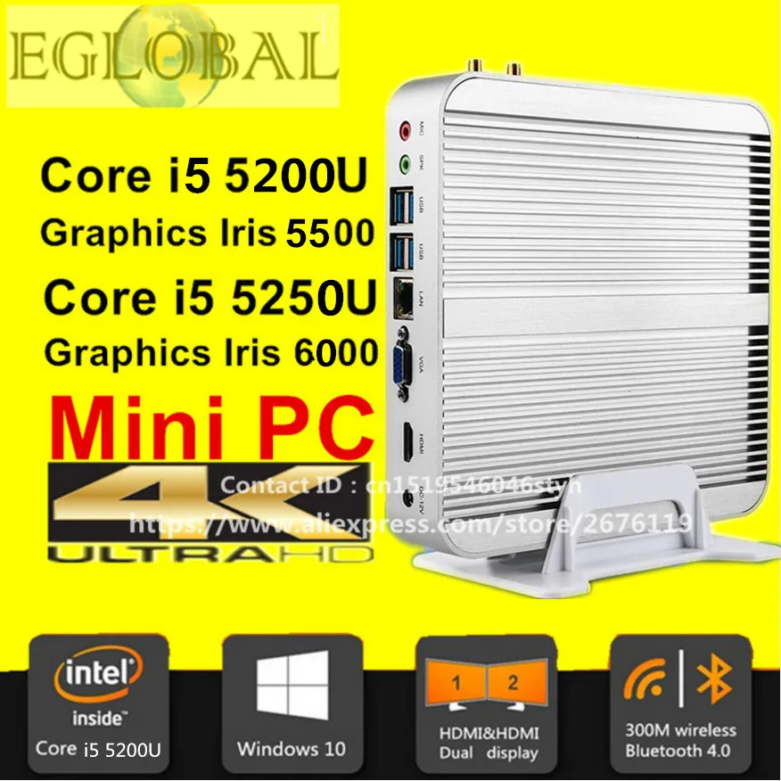 Main Features : Win10 Mini pc i5 Barebone Fanless Desktop Computer Core i5 5200U, i5 5250U Graphics HD 5500, HD6000 4K HD HTPCMini-Itx Micro PC