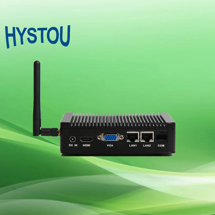 Main Features : Hystou Fanless Quad-Core Bay Trail J1900 Mini PC 4G RAM 64G SSD With Dual Gigabit LAN RJ45